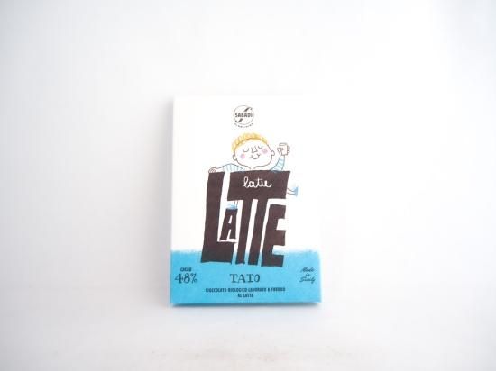 サバディ史上初のミルク チョコレート、アル ラッテ(al latte)シリーズ!!カカオの比率が高かったり、カカオ 由来の油脂(カカオバター)以外を使用していなかったりする本格的(?)なチョコレートを好きだという人であ ればあるほど、ミルクチョコレートのことを低く見る傾向があることに疑問を感じたシモーネ。質の良い素材を 使いちゃんと作ったのなら、カカオの個性をちゃんと引き出したミルクチョコレートを実現することが可能であ ることを世に認めてもらうために作ることにしたシリーズになります。6種類ありそれぞれ家族をイメージした デザインになっていて、使用する粉乳とカカオバター、コーヒーも生姜もビオ認証のものです。